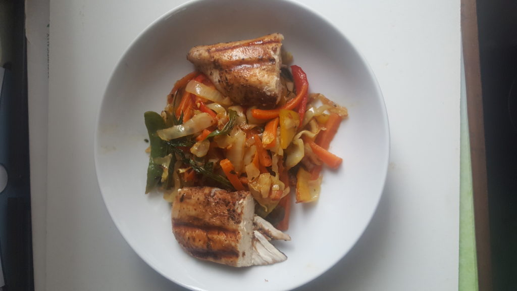 Grilled Jerk Chicken Breast w/ stir fry cabbage