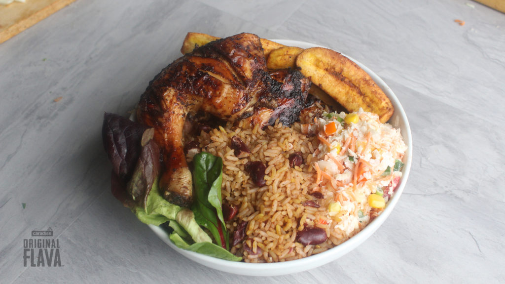 A delicious bowl made up of the most traditional jamaican dishes made with ease at home! Oven style jerk chicken, fried plantain, rice & peas, and coleslaw. Packed full of some of the most enjoyable flavours to come out of Jamaica. A great dish to make for loved ones, especially mum, with Mother’s Day being so soon.