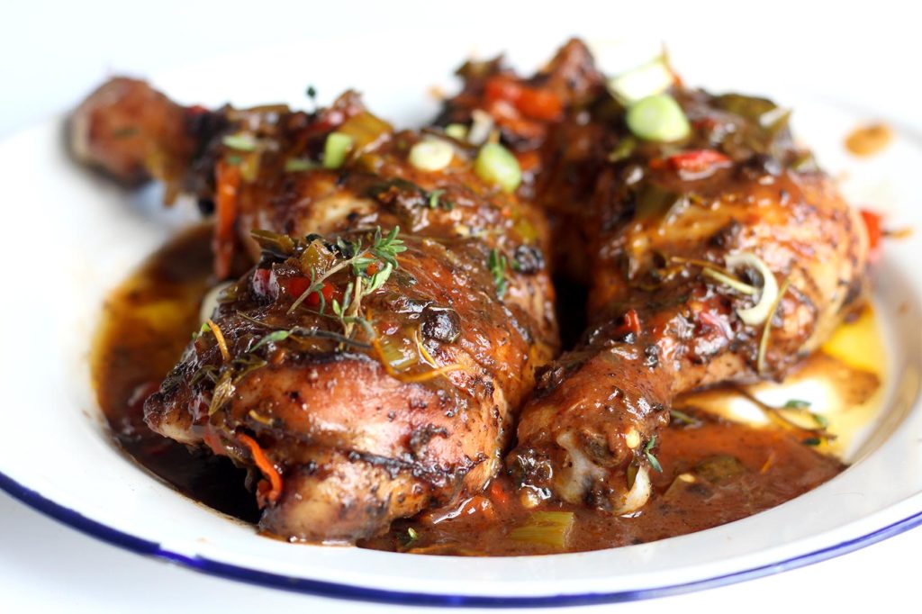 We’ve created a Jerk Chicken Oven style for those who don’t have a jerk/bbq grill, or the time do to it the more authentic way like our Jerk Chicken grilled recipe. If that’s you then, this recipe is for you! Jerk chicken is traditionally done in a Jerk bbq pan. We show you how its done by using an oven which is easier and takes just as good. This dish goes very well with Rice and Peas and is one of Jamaica’s most famous dishes, most people love it so now it’s time to impress your friends and learn how to make it for them! Let’s get cooking!