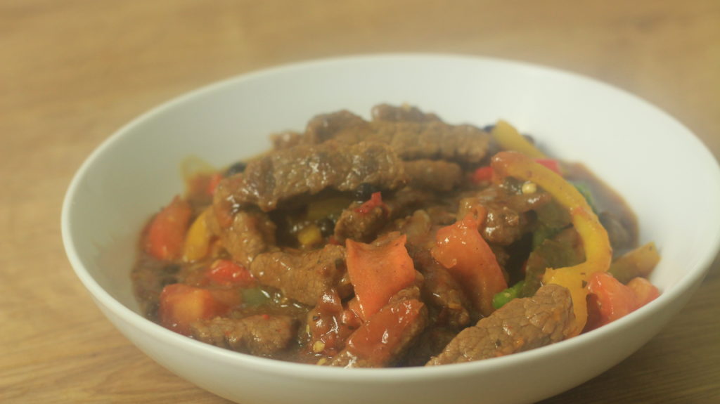 Pepper steak is a stir-fried Jamican dish everybody loves. This dish consists of sliced beef steak cooked with sliced green and/or red bell peppers and carrots with a variety of spices, thickened with cornstarch to produce a tasty thick gravy.