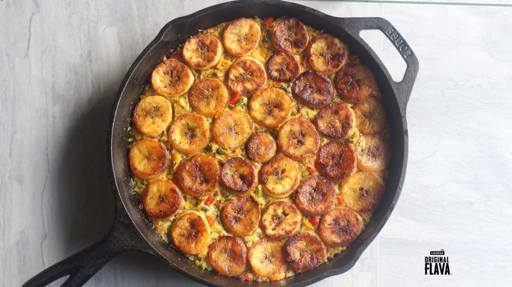 If you love Plantains you’ll love this recipe! No matter if your a vegan or non vegan. This recipe is filled with delicious spicy vegetables topped with sweet tasting plantains. Great for family and friends to enjoy- Give it a try!
