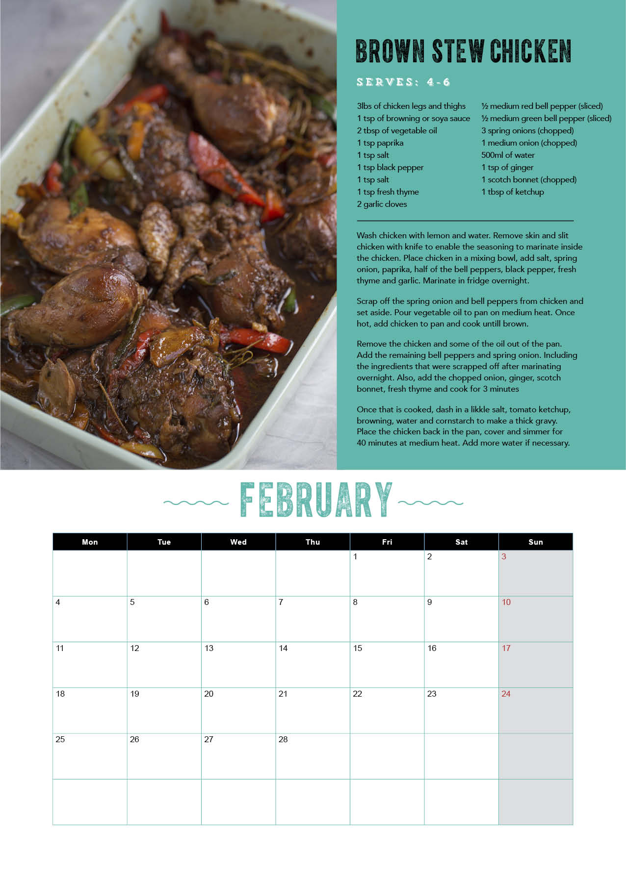 Calendar with 12 Delicious Caribbean recipes made easy for you all year round!